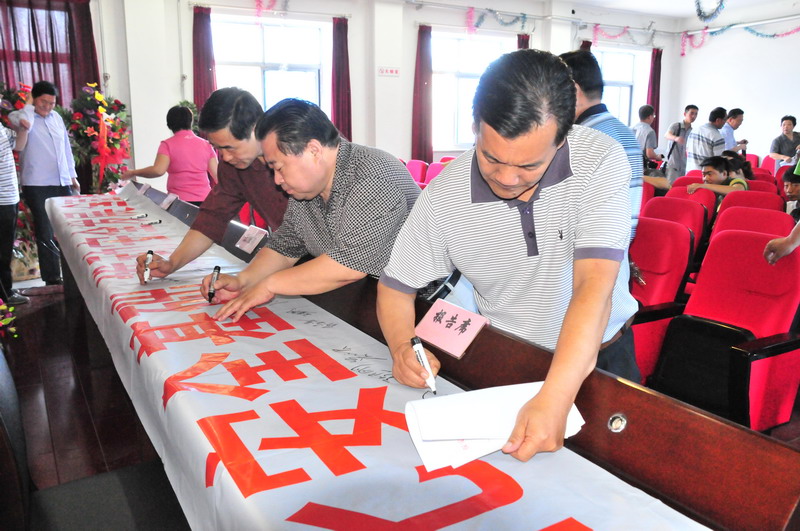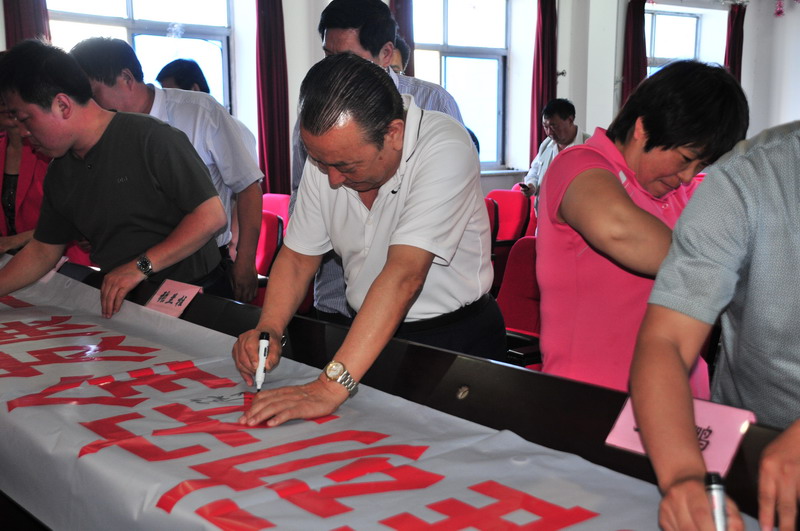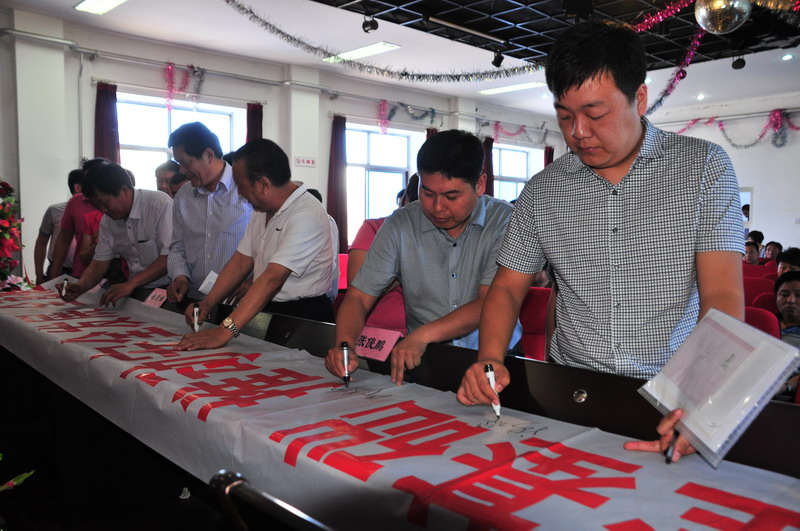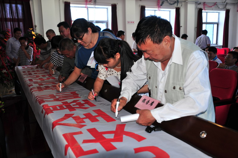 參會(huì)人員在“強(qiáng)化安全基礎(chǔ),推動(dòng)安全發(fā)展,全面推行標(biāo)準(zhǔn)化”條幅上簽字